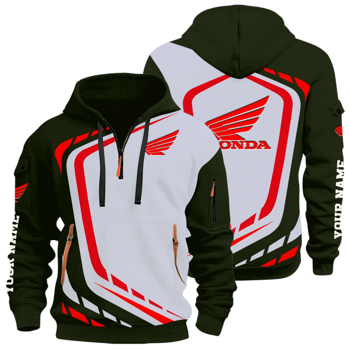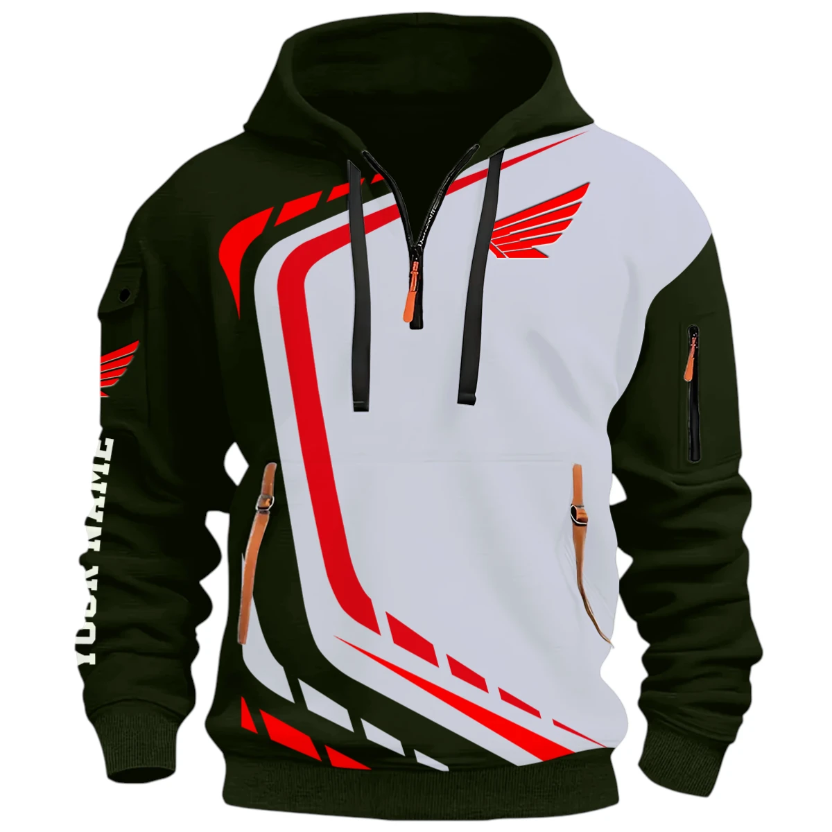 Classic Motor Half Zip Hoodie, Casual Hoodie Multi Pocket TFSY26QZ3H026 – Green