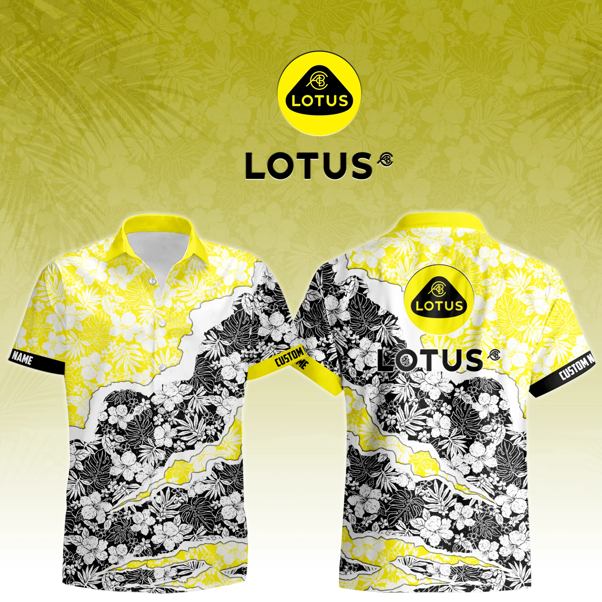 Hyper-SUV Hawaiian Shirt Button Up Yellow-Black