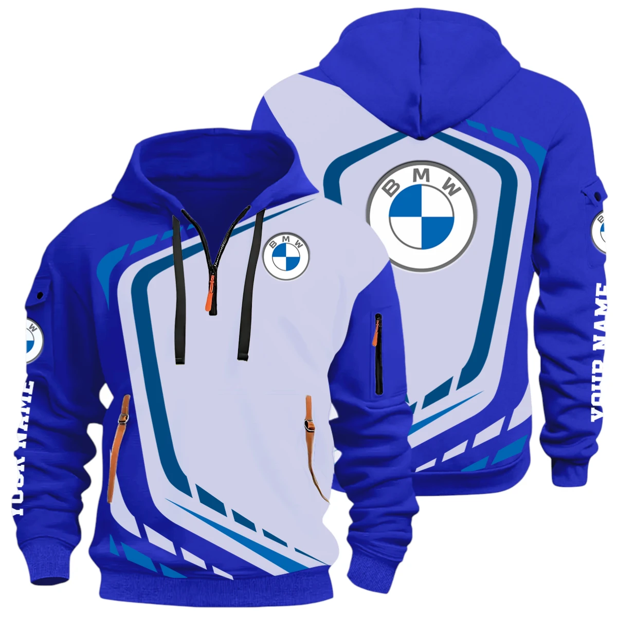 Off-Road Sedan Half Zip Hoodie, Casual Hoodie Multi Pocket TFSY26QZ3H002 – Blue