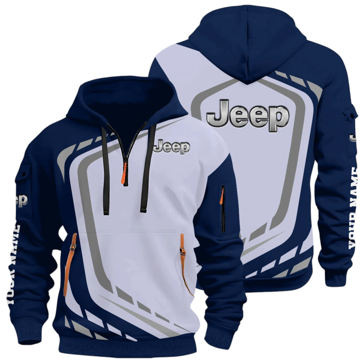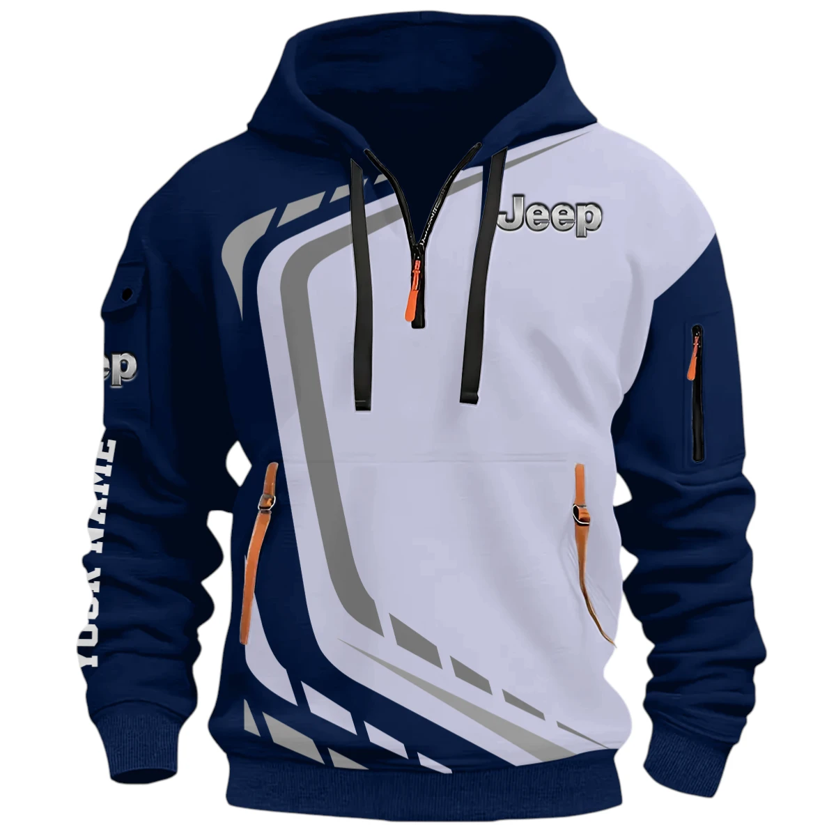 Off-Road Vehicle Half Zip Hoodie, Casual Hoodie Multi Pocket TFSY26QZ3H051 – Navy