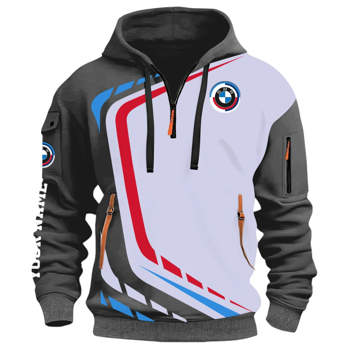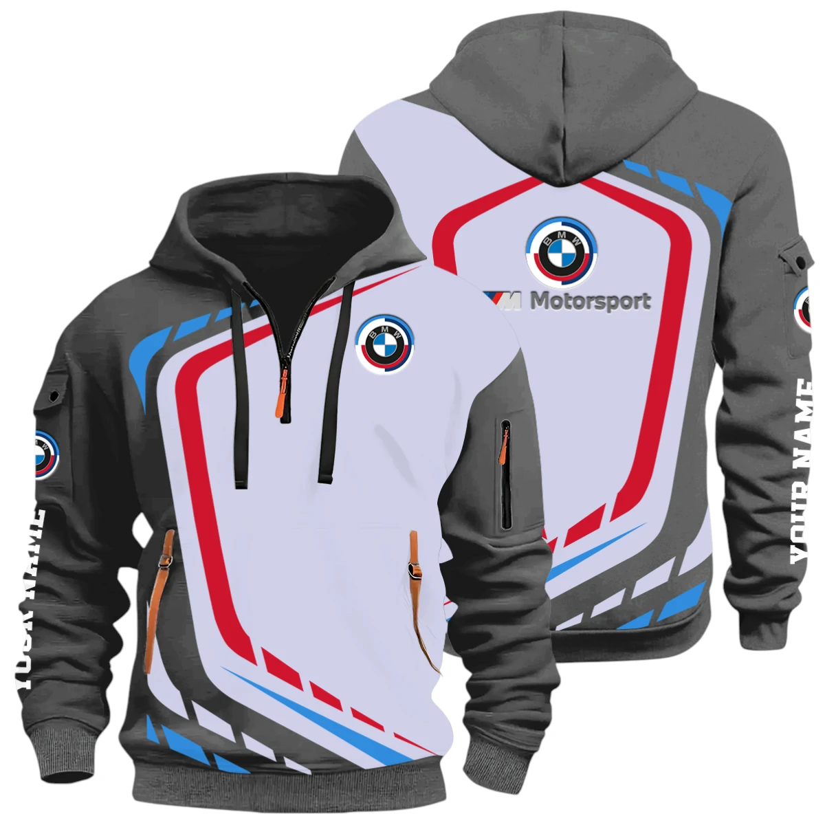 Professional Level Race Car Half Zip Hoodie, Casual Hoodie Multi Pocket TFSY26QZ3H039 – Grey