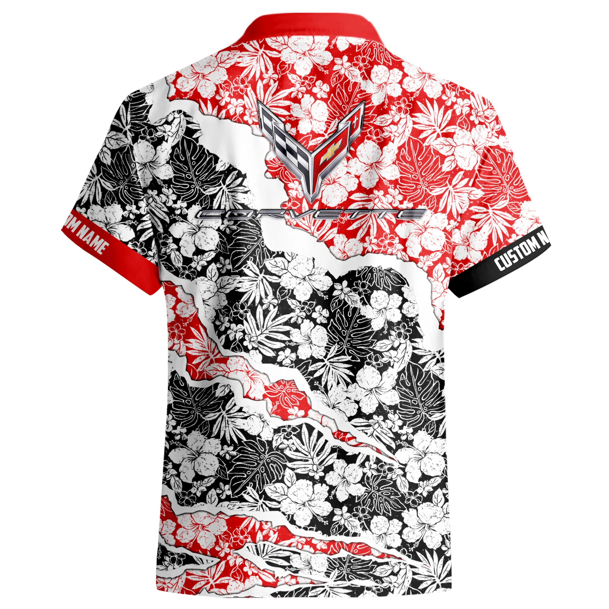 Sports Car Hawaiian Shirt Button Up Red-Black