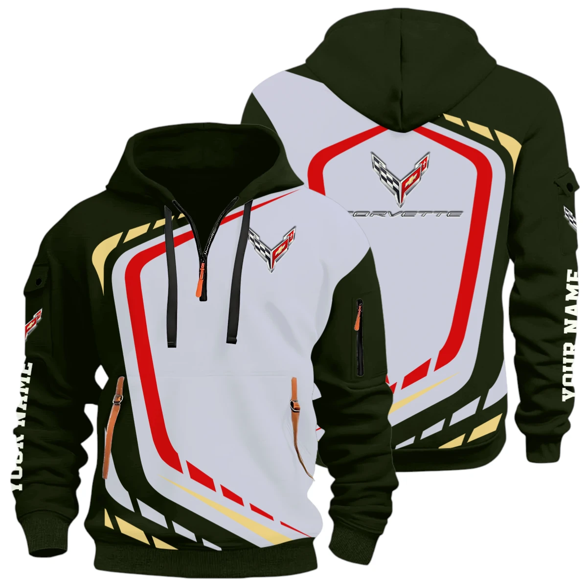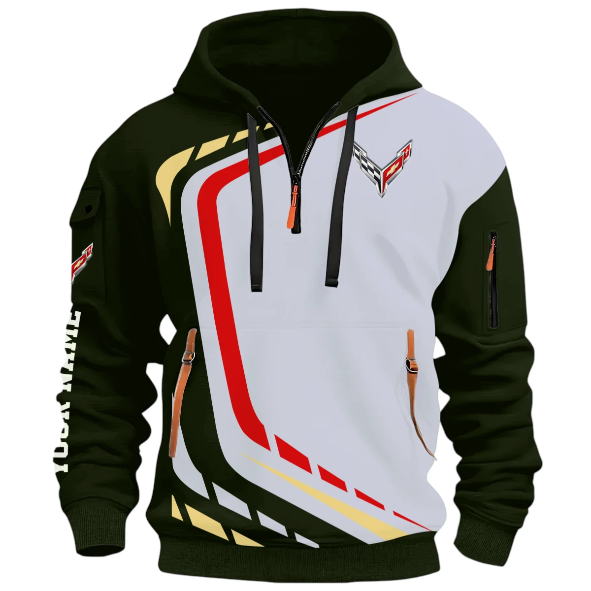 Sports Vehicle Half Zip Hoodie, Casual Hoodie Multi Pocket TFSY26QZ3H004 – Green
