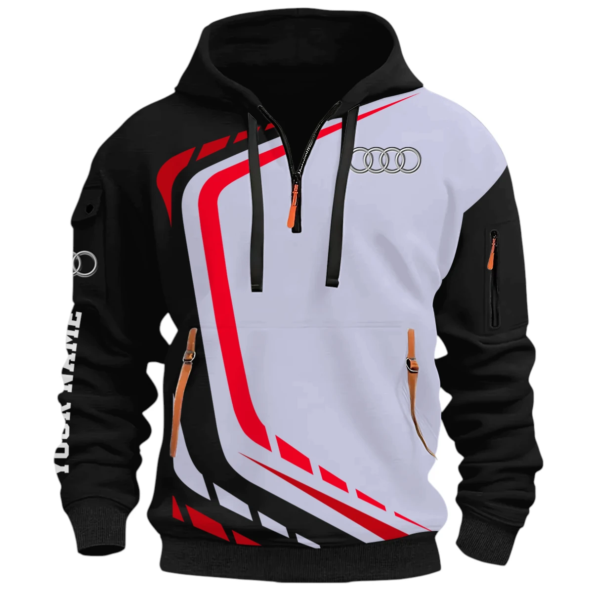 Vehicles Half Zip Hoodie, Casual Hoodie Multi Pocket TFSY26QZ3H001 – Black