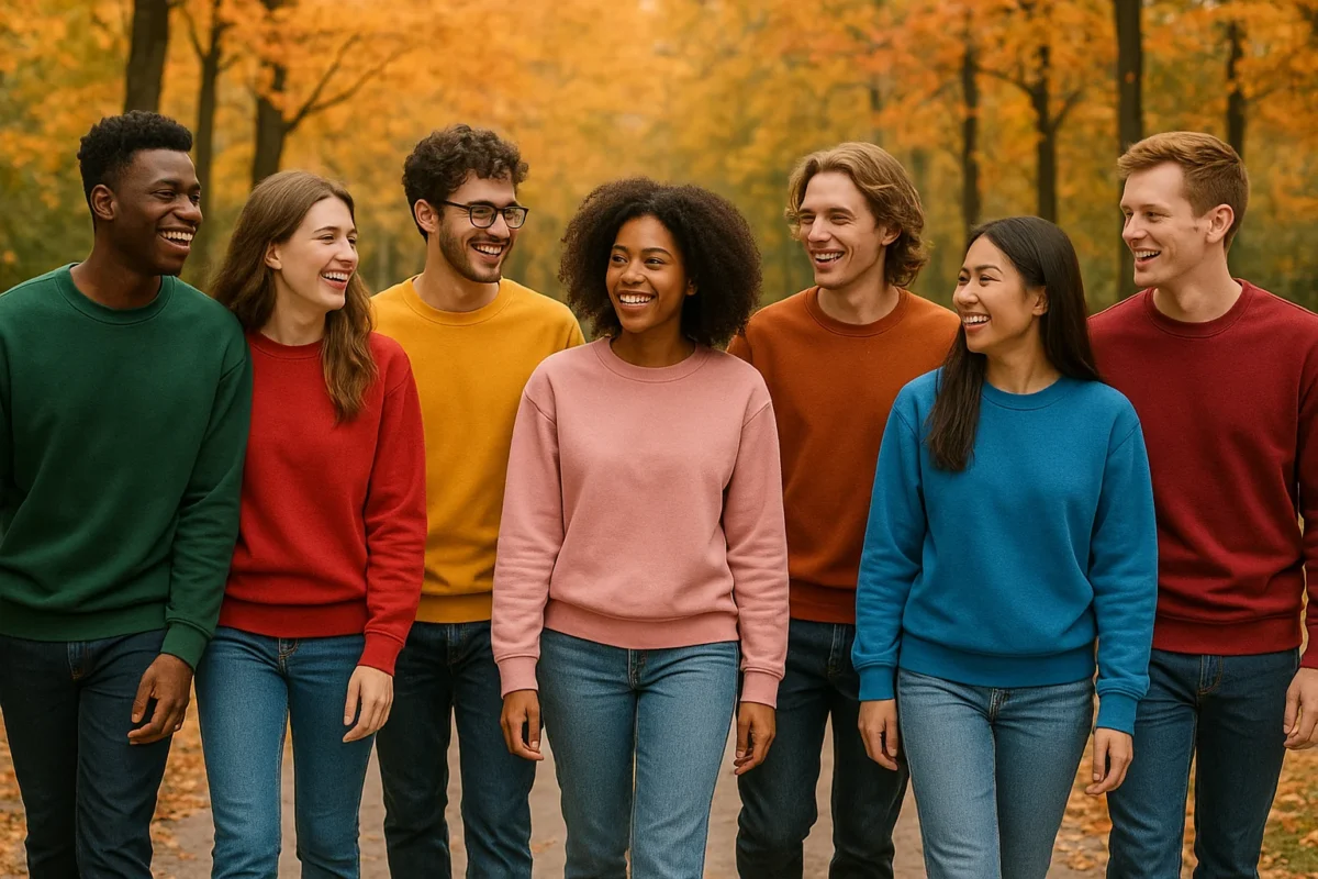 Color choice also plays a practical role. Fall wardrobes are all about layering—think denim jackets, wool coats, flannel shirts, and suede boots. Choosing sweatshirt colors that coordinate easily with these textures and tones helps simplify your outfit decisions and keeps your look polished, not clashing.
