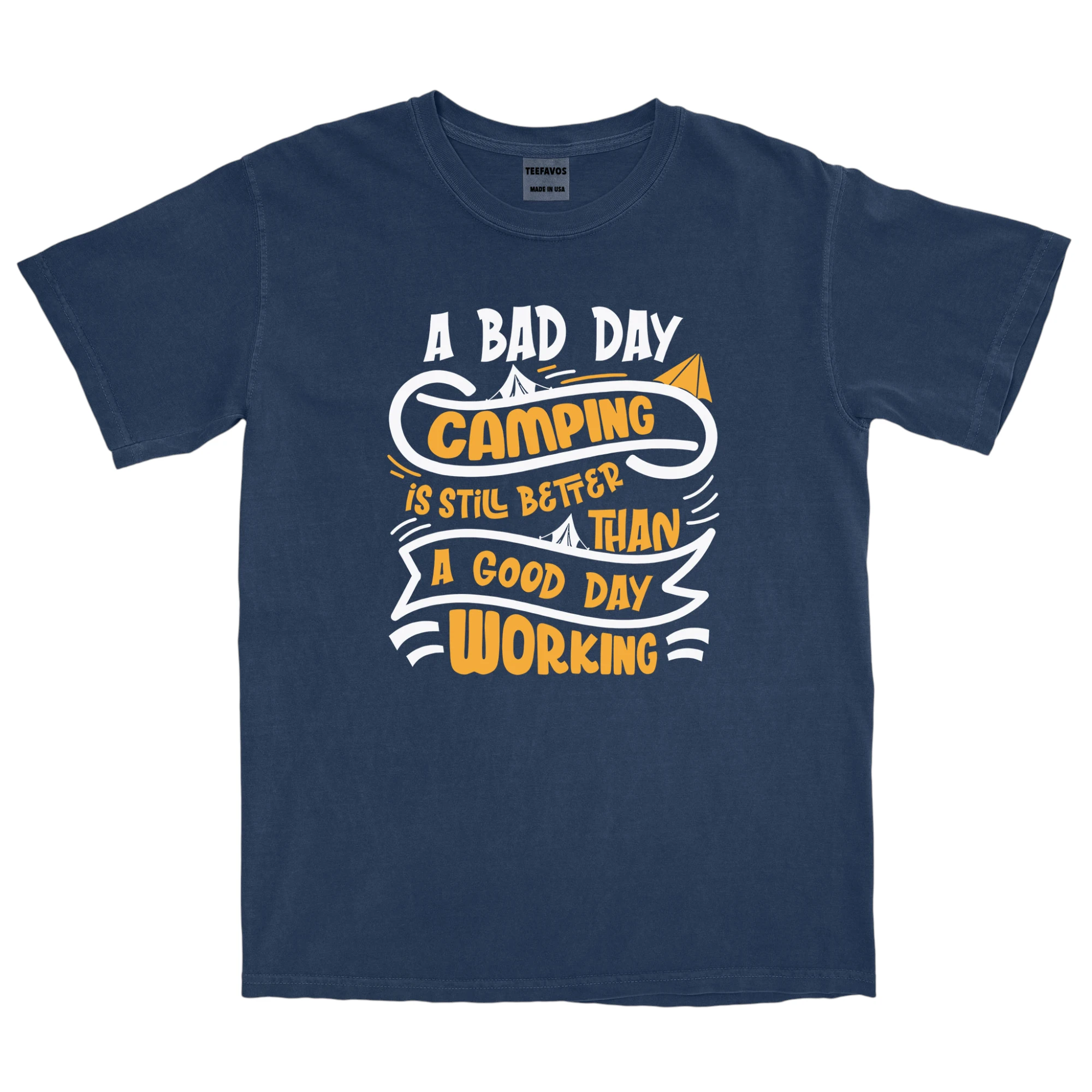 A Bad Day Camping Is Still Better Than Unisex Comfort Colors T-shirts – Navy – TEEFAVOS