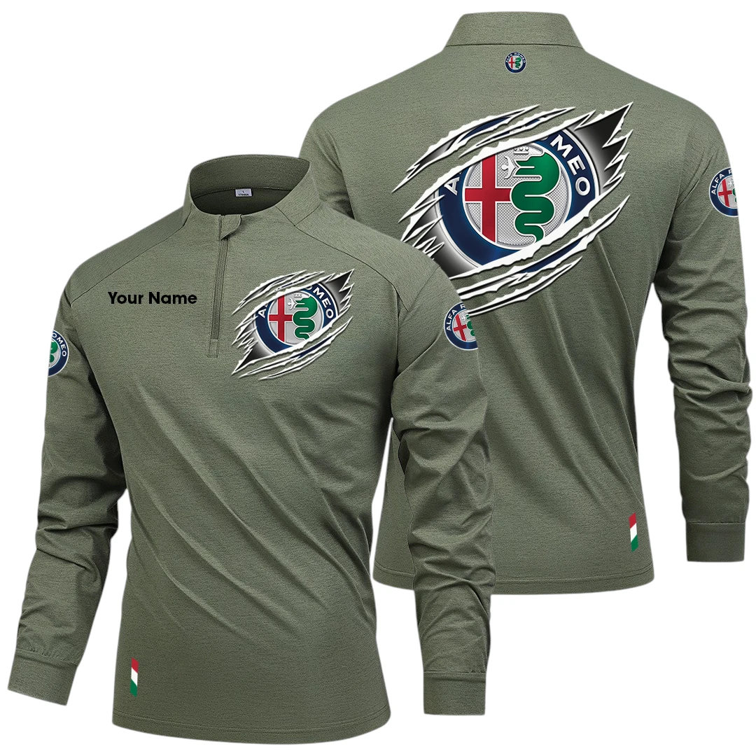 Alfa Romeo Long Sleeve Shirt, Stand Collar Quarter Zip-up Custom Name HIDI080525Y49LMT05ALR