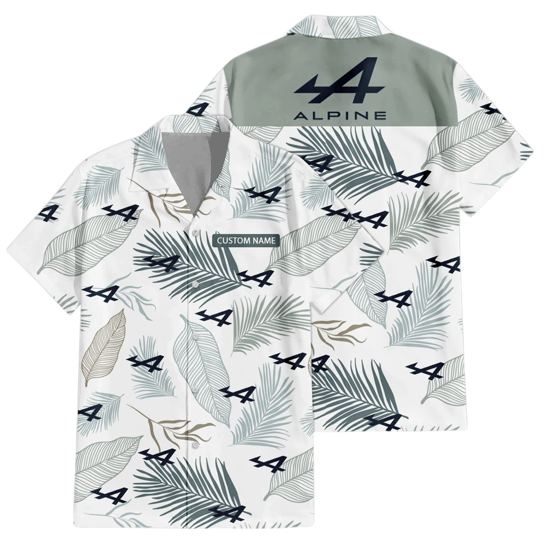 Alpine F1 Team Hawaiian Shirt Tropical Leaves Seamless Pattern All-over Print Summer Gift, Custom Name HIHI160125Y7HWLS1ALP
