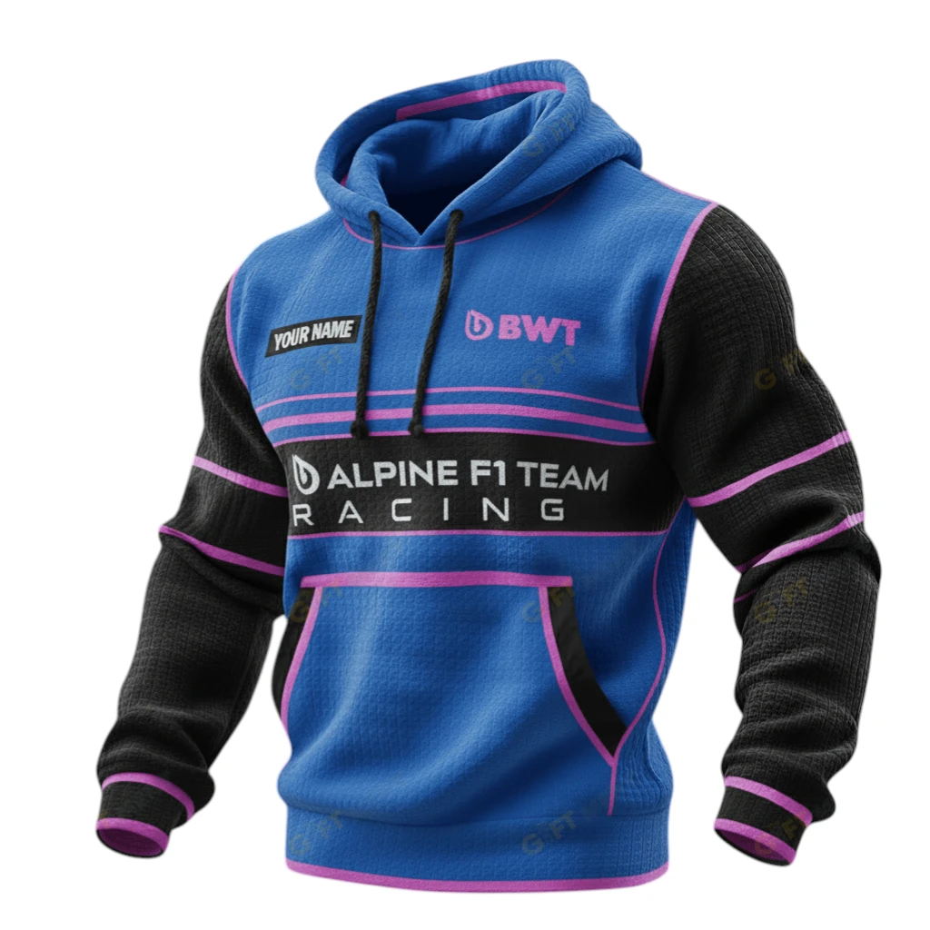 Alpine F1 Team Racing Waffle Pullover Hoodie 3D Personalized Name