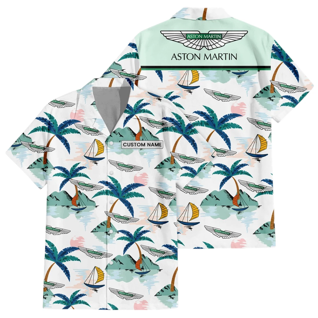Aston Martin Exclusive Logo Button Up Hawaiian Shirt Tropical Landscape Pattern All-over Print, Custom Name HIDI190225Y7HWLS2ASM