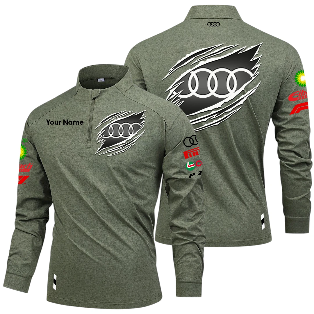 Audi Sport Racing Long Sleeve Shirt, Stand Collar Quarter Zip-up Custom Name HIDI150525Y49LMT05AUS2