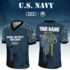 Audi Sport Racing x US Navy 250th Anniversary V-Neck Short Sleeve Jersey 3D Limited 2026 Custom Your Name