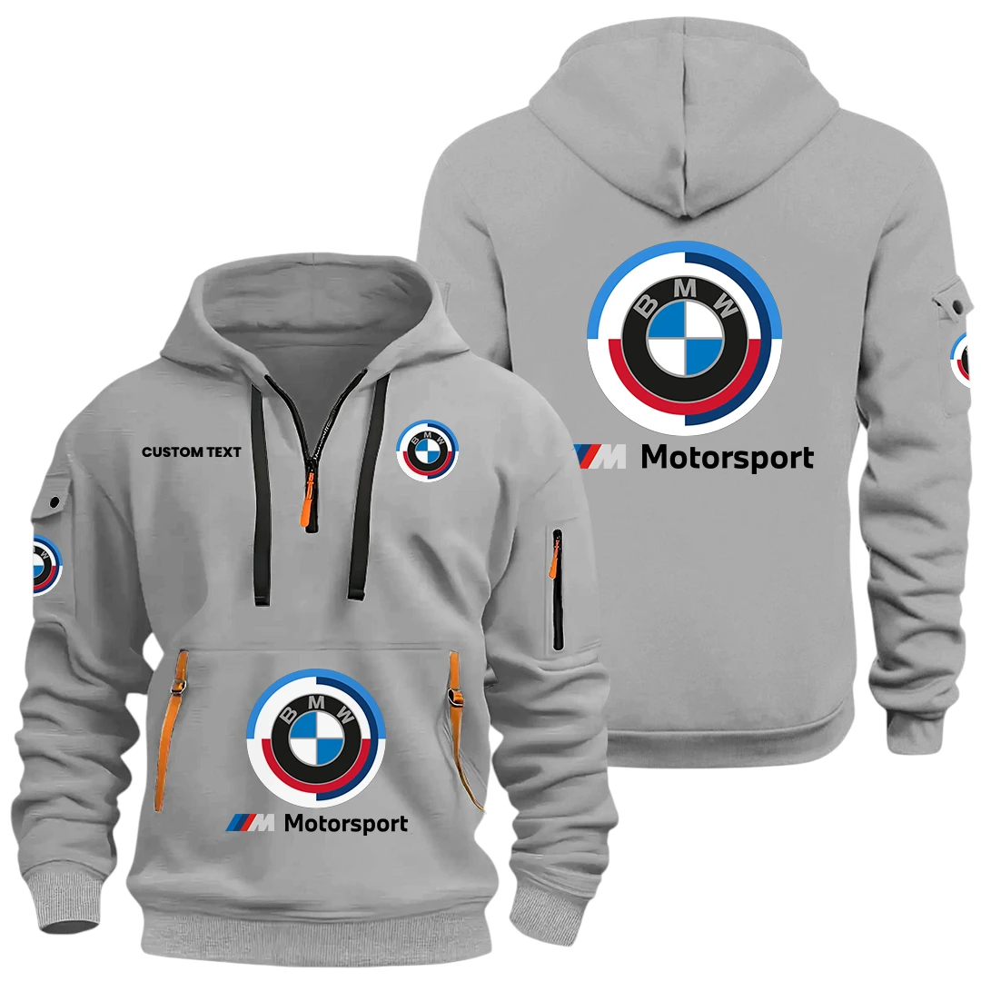 BMW M Motorsport Half Zip Hoodie, Sports Hooded Multi-Pockets, Custom Name HIDI060325Y25QZ2HBMM