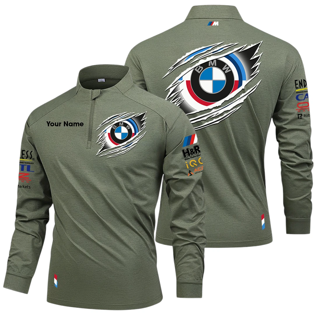 BMW M Motorsport Racing Long Sleeve Shirt, Stand Collar Quarter Zip-up Custom Name HIDI150525Y49LMT05BMM2