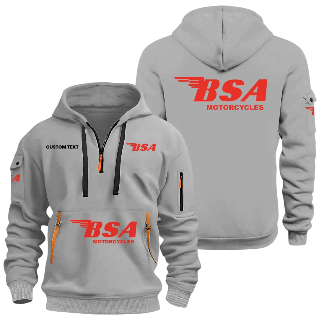 BSA Motorcycles Half Zip Hoodie, Sports Hooded Multi-Pockets, Custom Name HIDI050325Y25QZ2HBSA