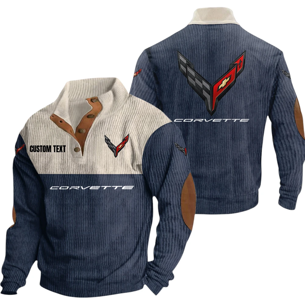C8 Corvette Exclusive Logo Knitted Ribbed Corduroy Sweatshirt Mid Stretch Stand Collar Pullover Sweater, Custom Text HG140325Y32RCSCT1C8C