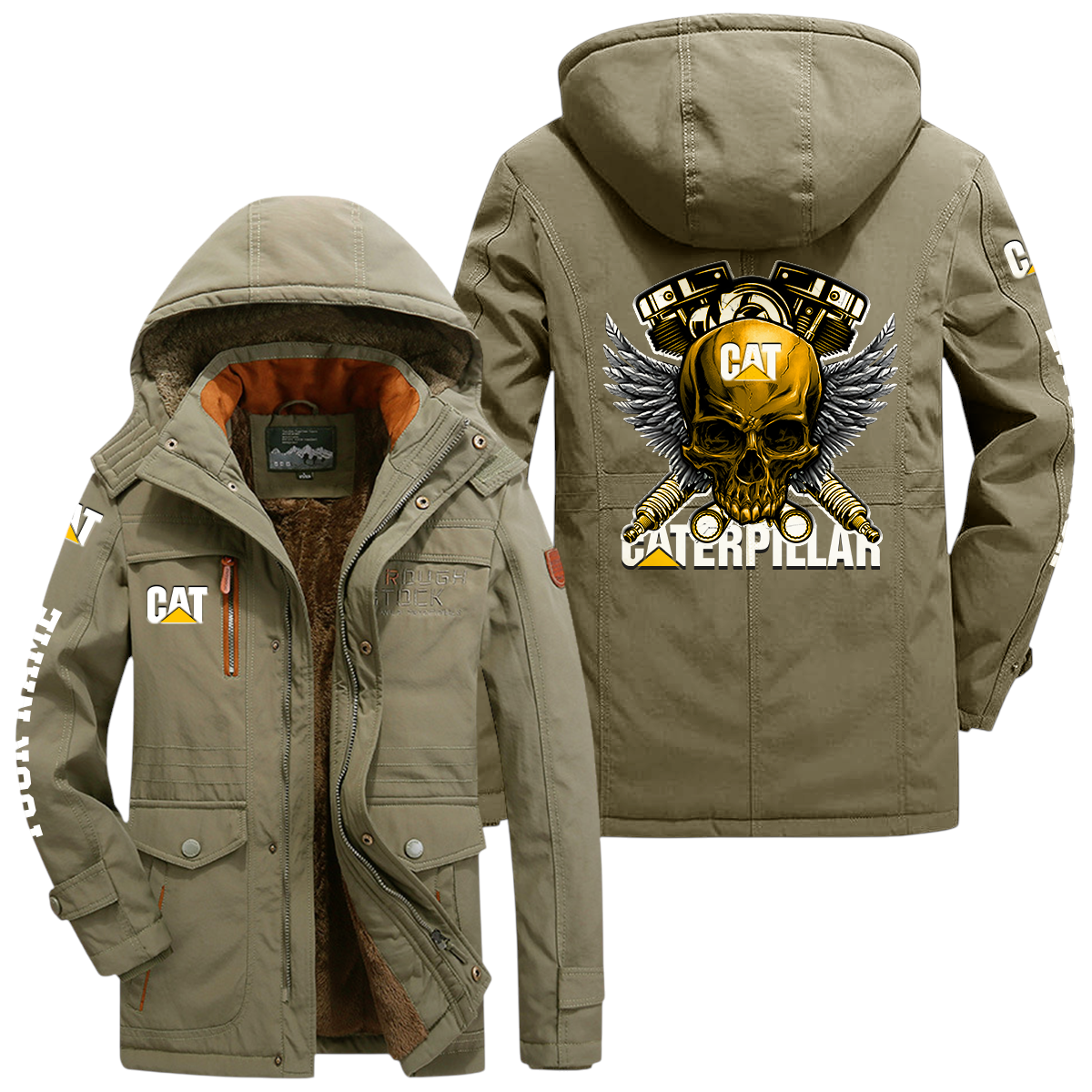 Caterpillar Windproof Jacket Heavy Duty Fleece Lined Hooded Coat Custom Your Name