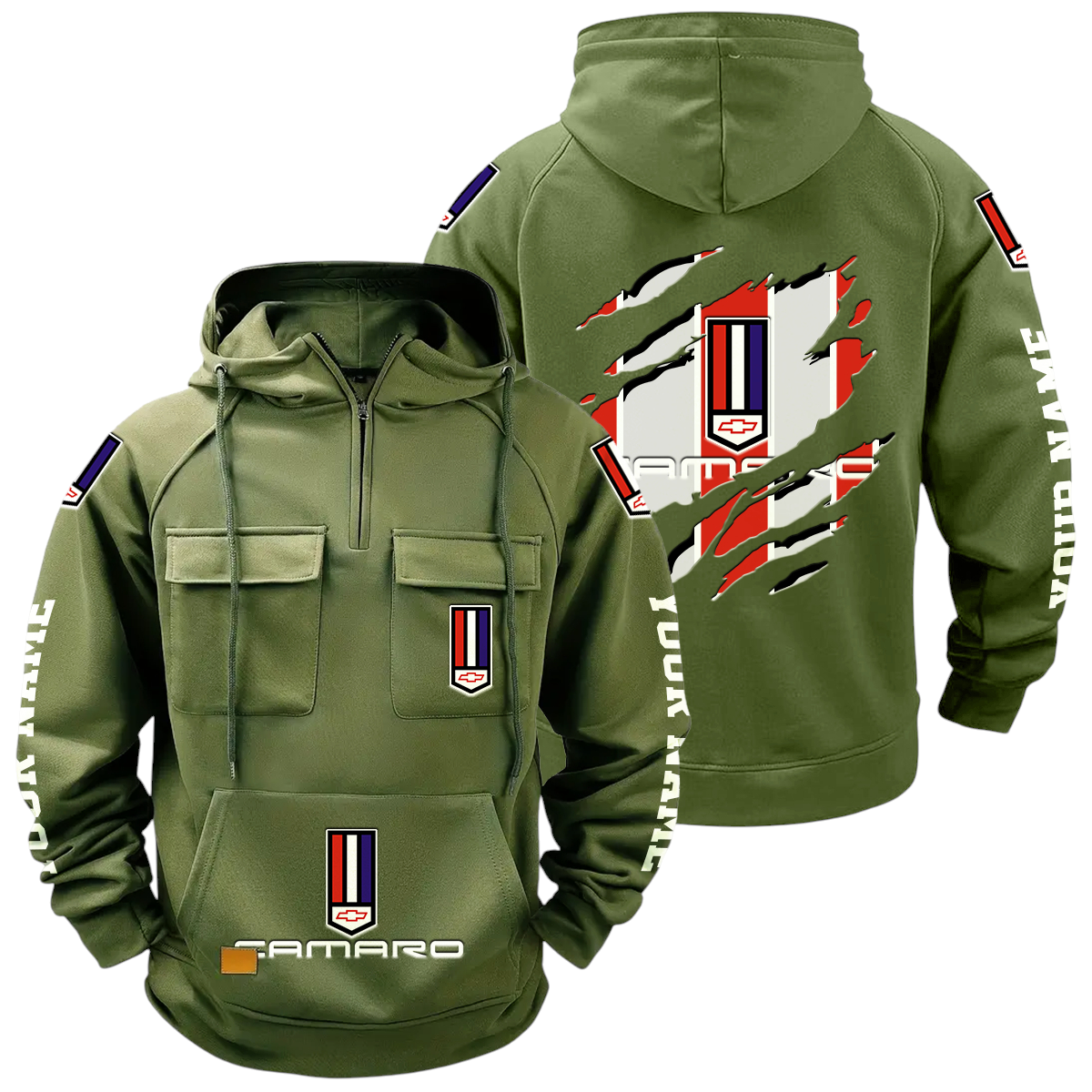 Chevrolet Camaro Quarter Zip Hoodie Multi-Pockets Custom Name