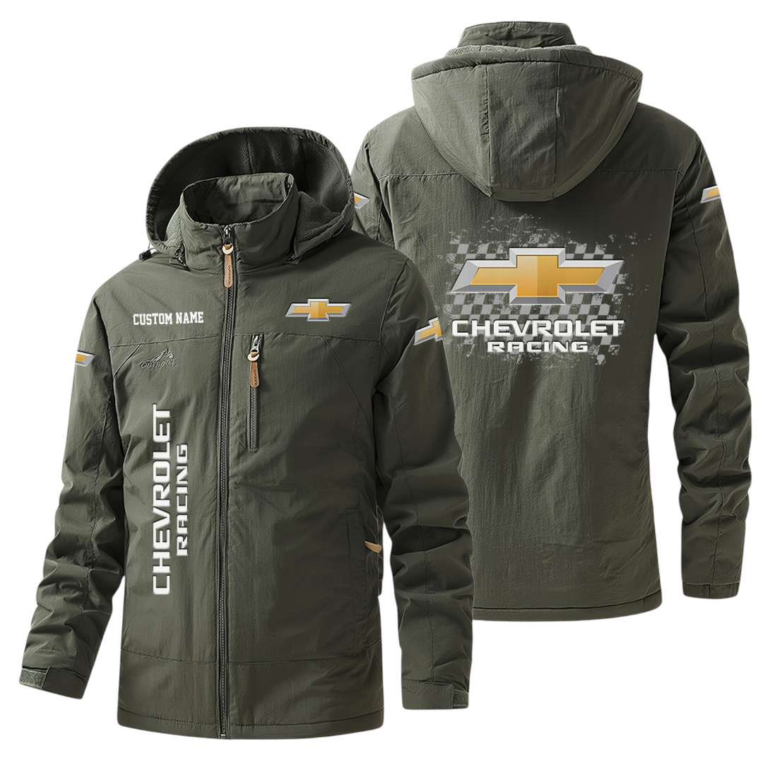 Chevrolet Racing Windbreaker Jacket Hooded Warm Lining Waterproof Custom Name