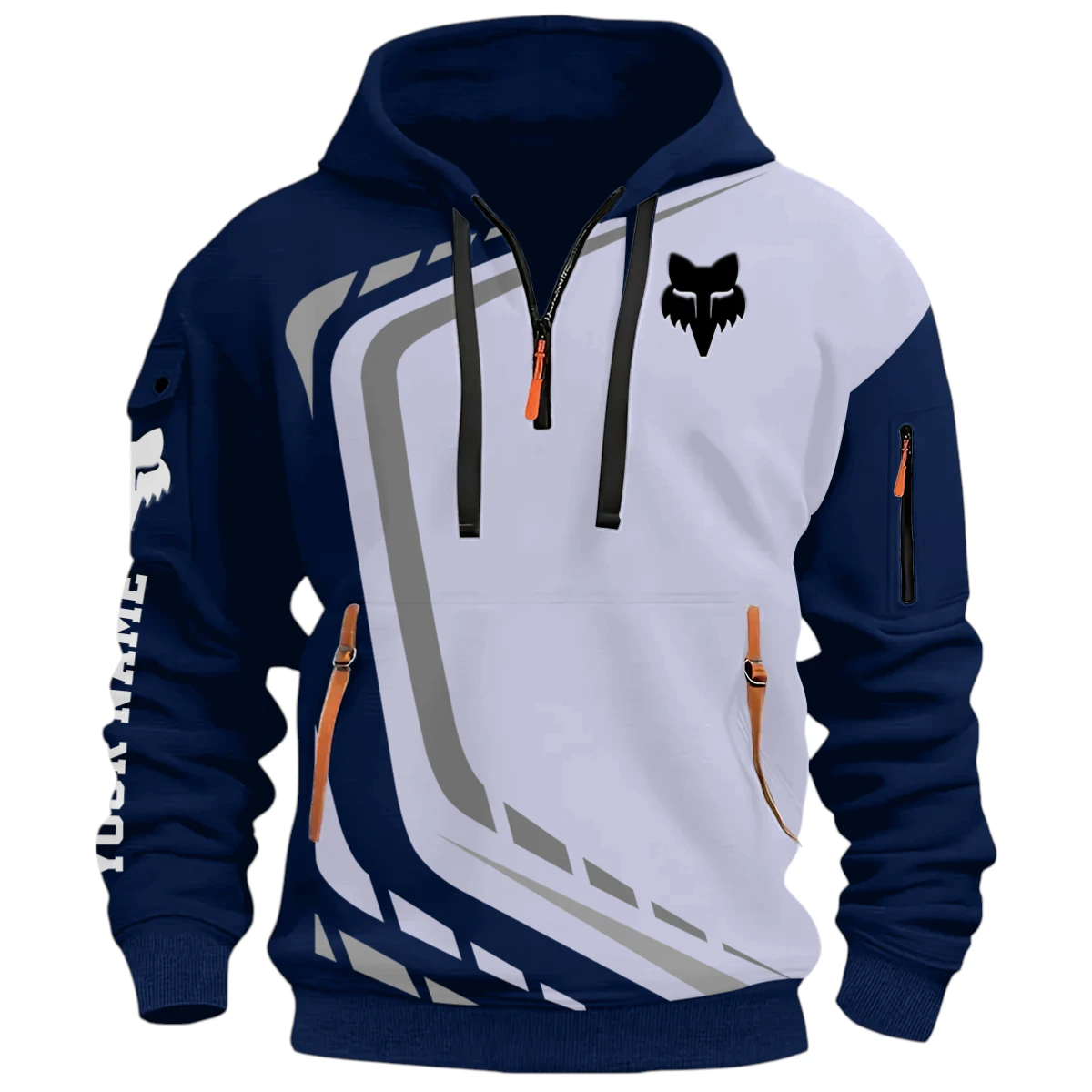 Classic Racer Half Zip Hoodie, Casual Hoodie Multi Pocket TFSY26QZ3H006 – Navy – TEEFAVOS