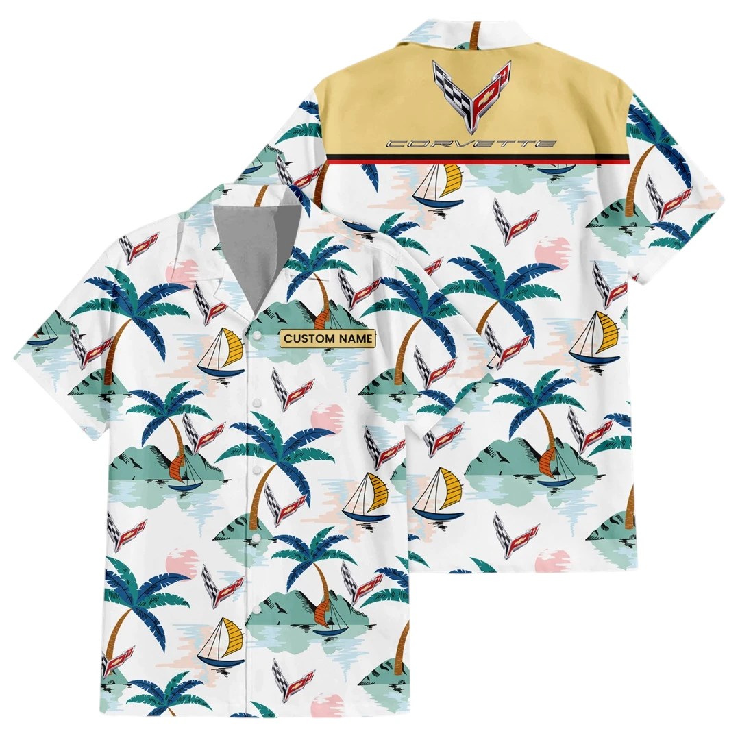 Corvette Exclusive Logo Button Up Hawaiian Shirt Tropical Landscape Pattern All-over Print, Custom Name HIDI190225Y7HWLS2COR