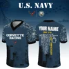 Corvette Racing x US Navy 250th Anniversary V-Neck Short Sleeve Jersey 3D Limited 2026 Custom Your Name