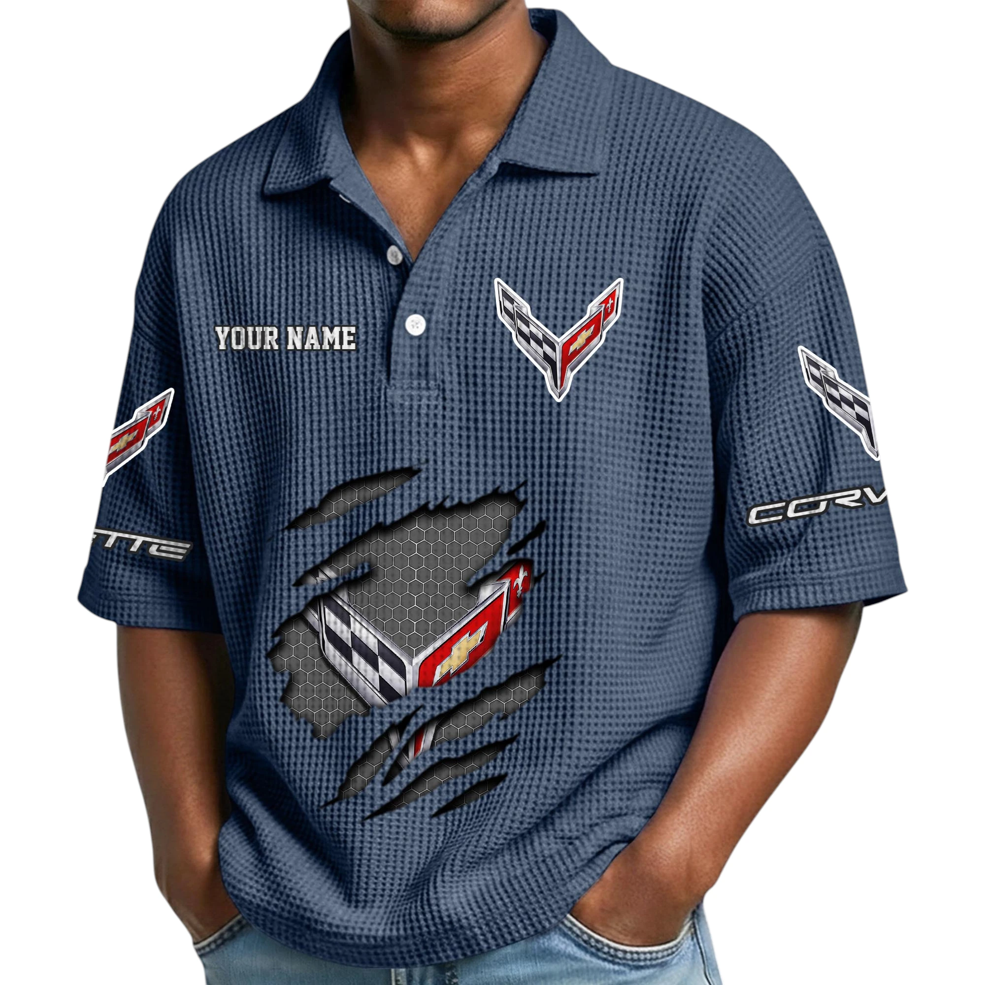 Corvette Waffle Polo Shirt Custom Your Name