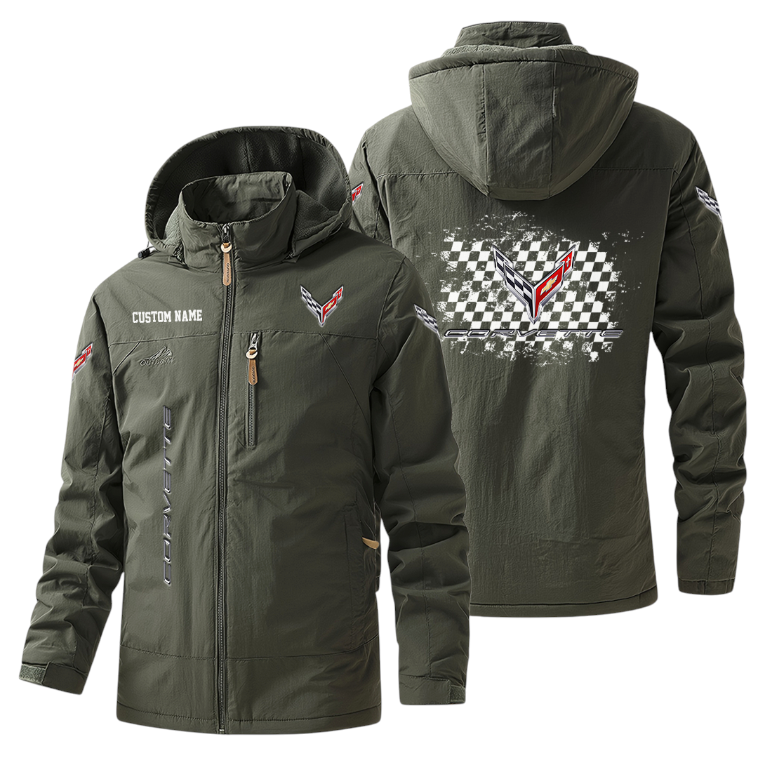 Corvette Windbreaker Jacket Hooded Warm Lining Waterproof Custom Name