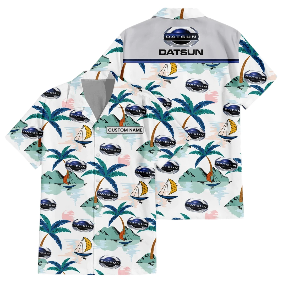 Datsun Exclusive Logo Button Up Hawaiian Shirt Tropical Landscape Pattern All-over Print, Custom Name HIDI190225Y7HWLS2DAT