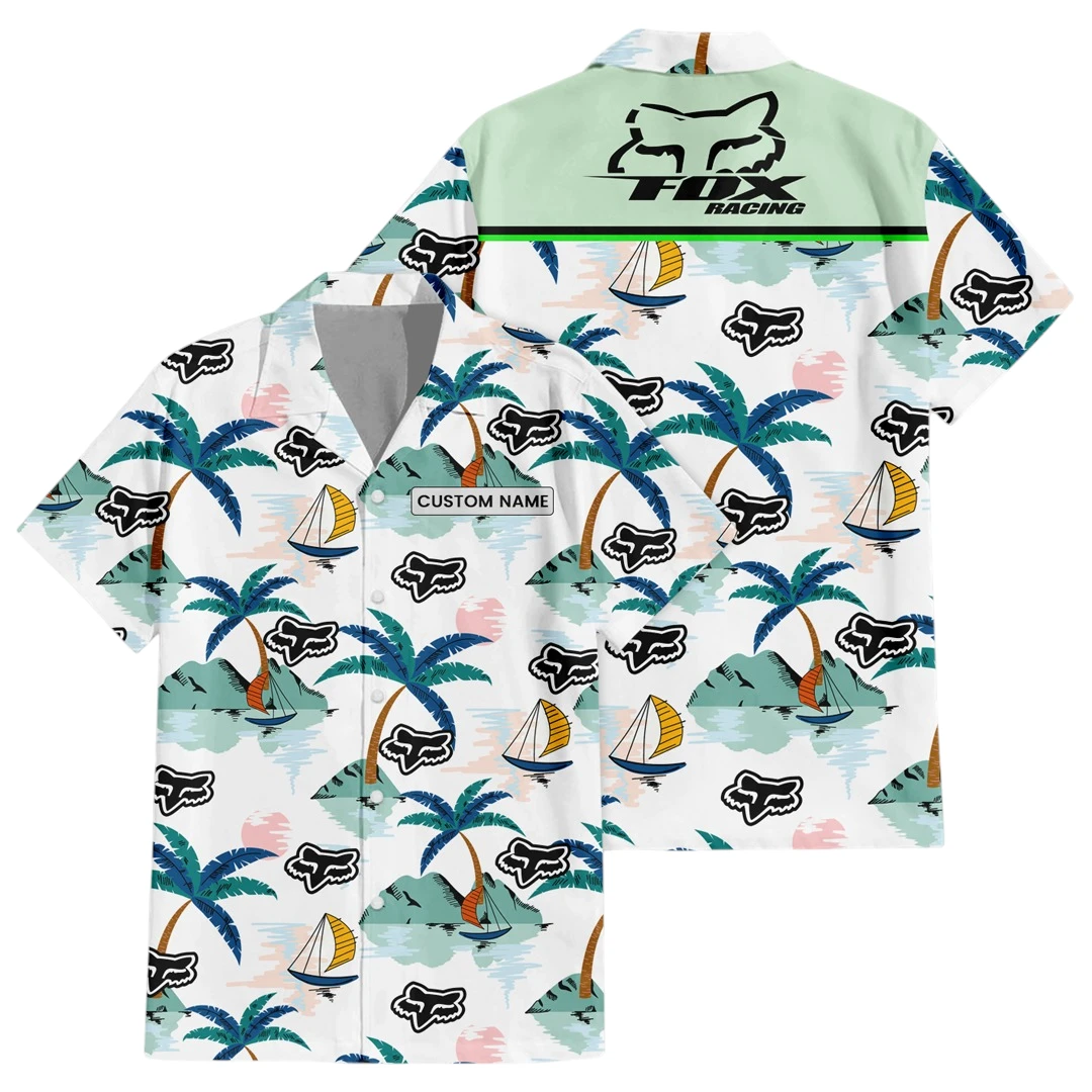 Fox Racing Exclusive Logo Button Up Hawaiian Shirt Tropical Landscape Pattern All-over Print, Custom Name HIDI190225Y7HWLS2FOX