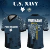 Fox Racing x US Navy 250th Anniversary V-Neck Short Sleeve Jersey 3D Limited 2026 Custom Your Name