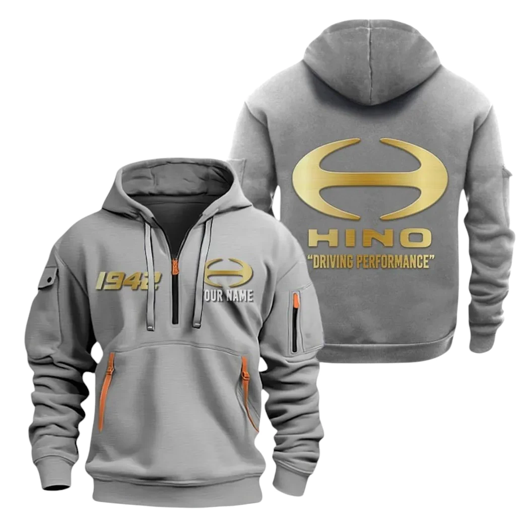 Hino Motors Half Zip Hoodie, Sports Hooded Multi-Pockets, Custom Name TN060325Y25QZ2HCT2HIN