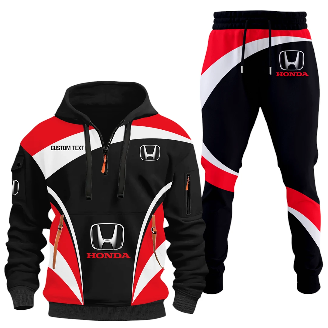 Honda Half Zip Hoodie x Long Pants Set All-over Print, Custom Name HIDI130325Y26QZ3HHON