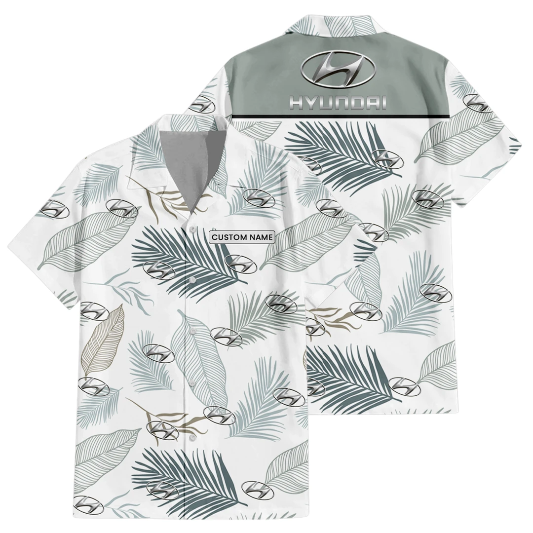 Hyundai Exclusive Logo Button Up Hawaiian Shirt Tropical Leaves Seamless Pattern All-over Print, Custom Name HIHI170225Y7HWLS1HYU