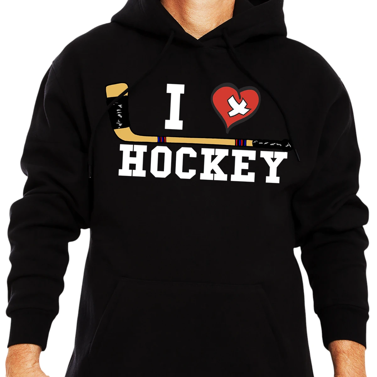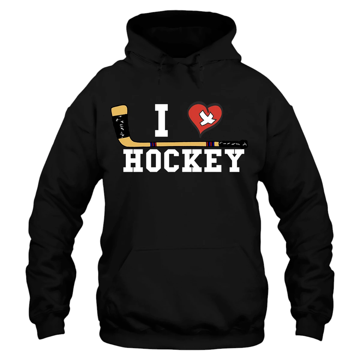 I Love Hockey Hoodie – Black – TEEFAVOS