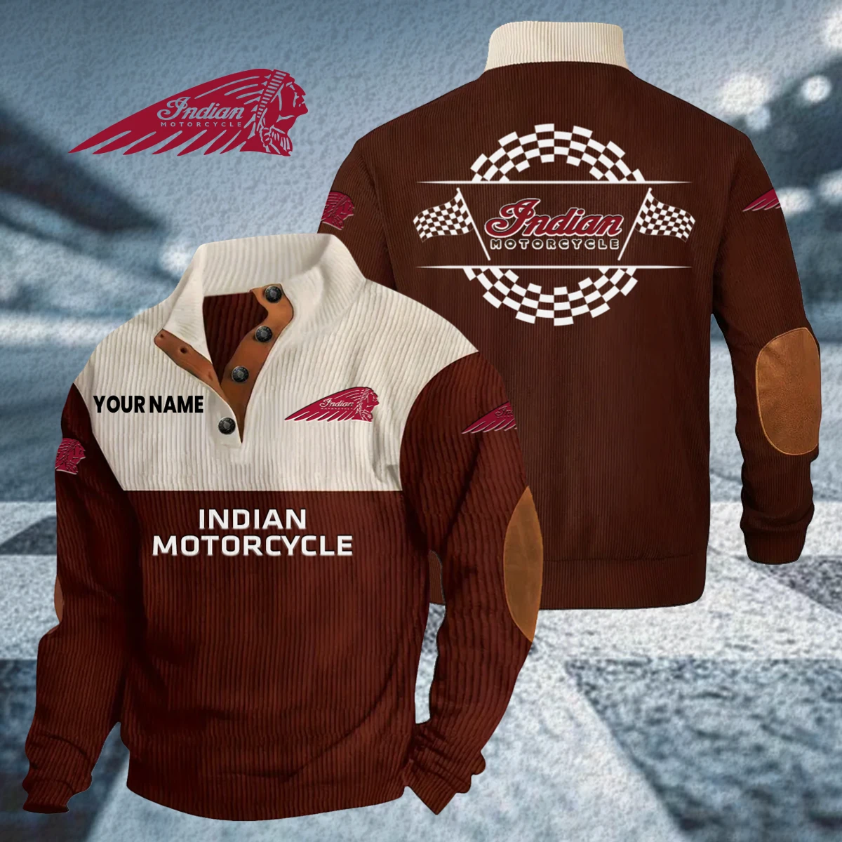 Indian Motorcycle Knitted Ribbed Corduroy Sweatshirt Stand Collar Custom Your Name
