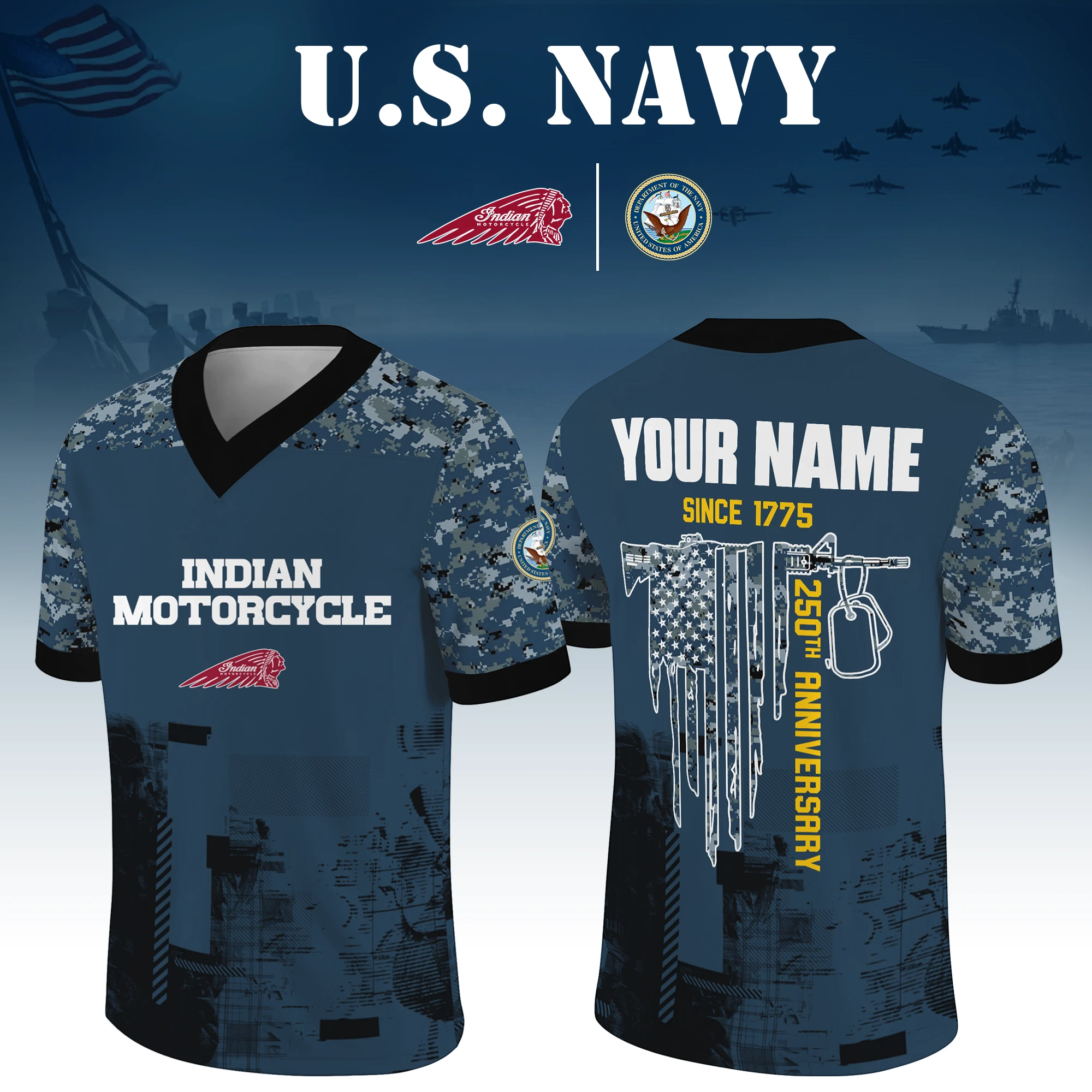 Indian Motorcycle x US Navy 250th Anniversary V-Neck Short Sleeve Jersey 3D Limited 2026 Custom Your Name