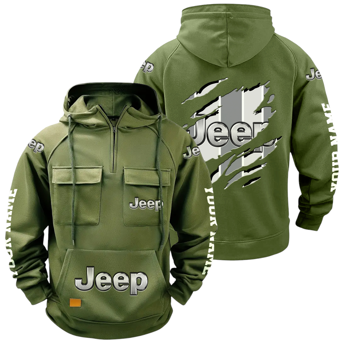 Jeep Quarter Zip Hoodie Multi-Pockets Custom Name
