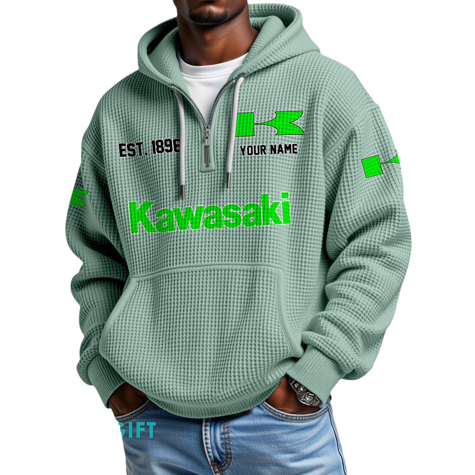 Kawasaki Quarter-Zip Waffle Hoodie Custom Your Name