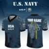 KIA x US Navy 250th Anniversary V-Neck Short Sleeve Jersey 3D Limited 2026 Custom Your Name