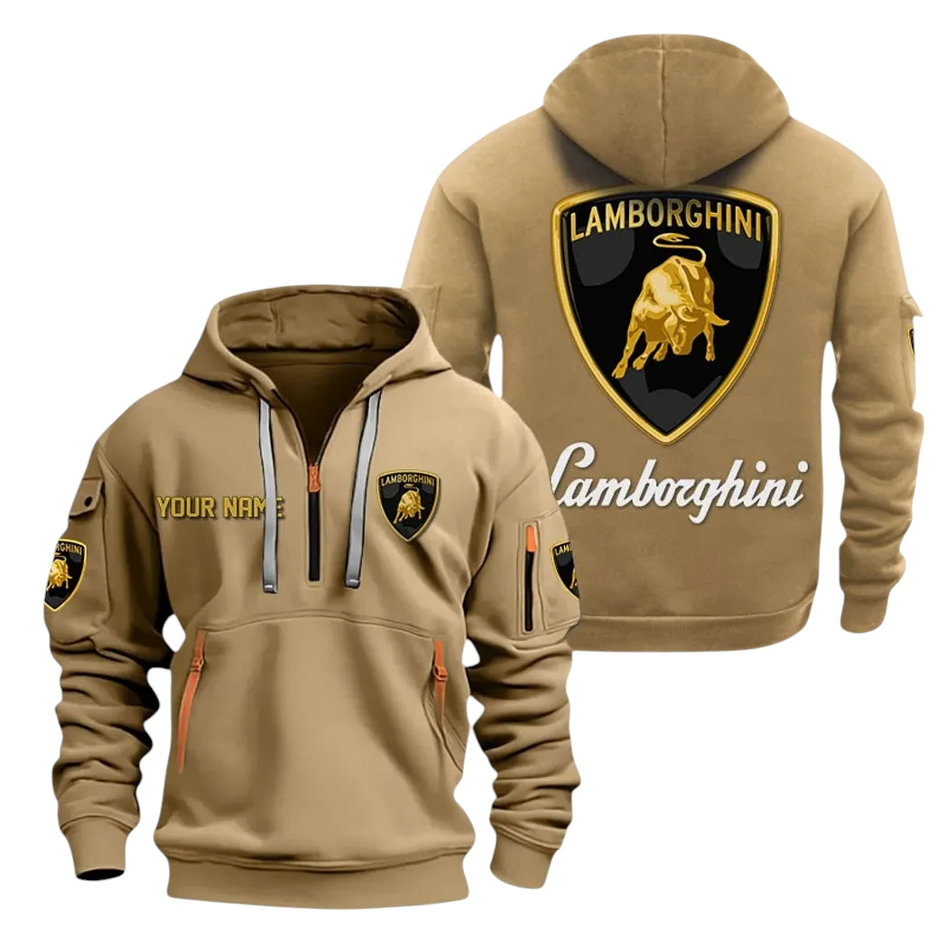 Lamborghini Half Zip Hoodie, Sports Hooded Multi-Pocket, Custom Name TN080325Y25QZ2HCT6LAM