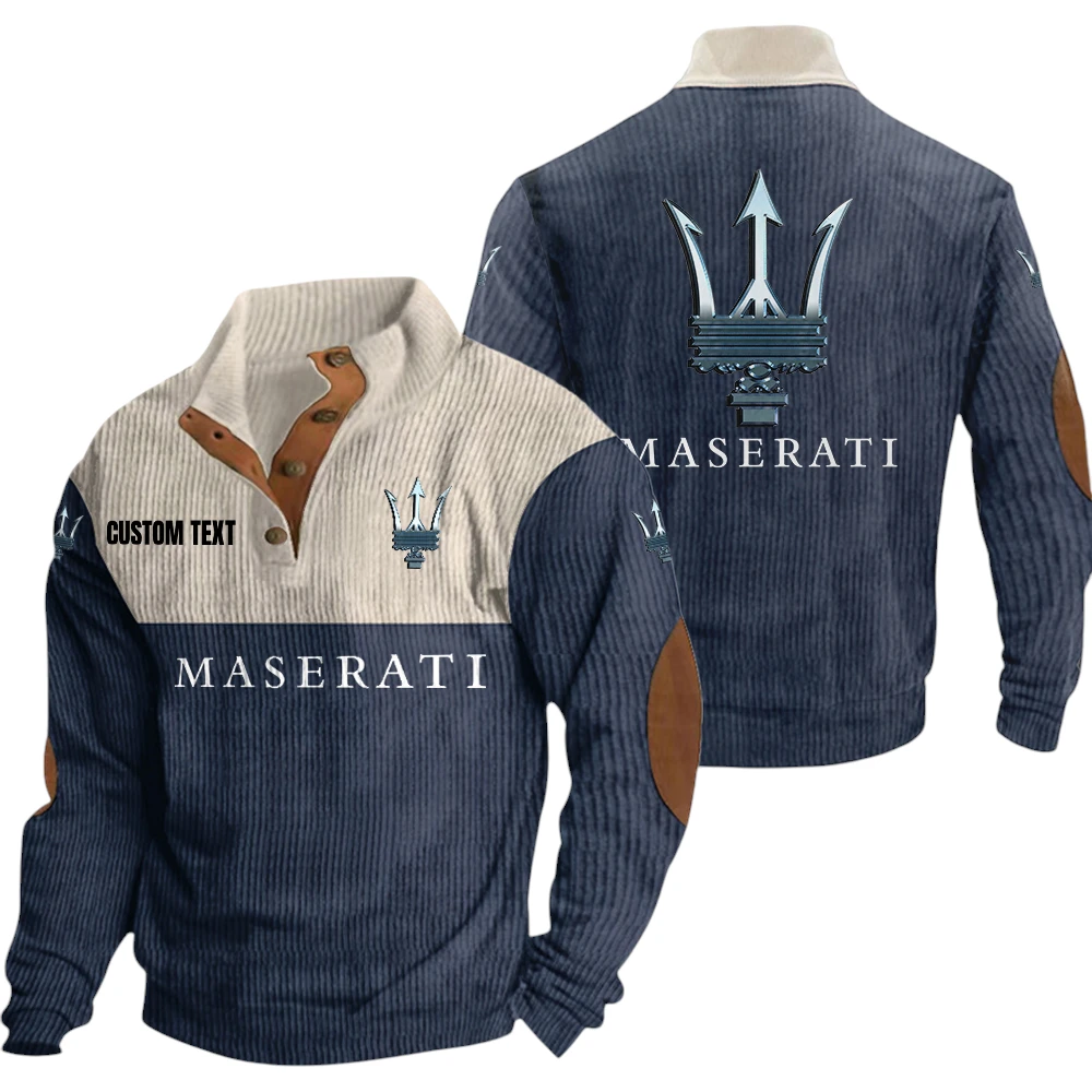 Maserati Exclusive Logo Knitted Ribbed Corduroy Sweatshirt Mid Stretch Stand Collar Pullover Sweater, Custom Text HG150325Y32RCSCT1MAS