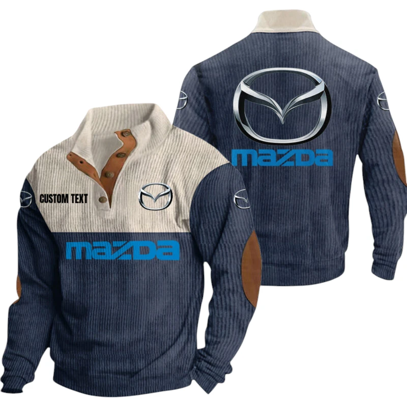 Mazda Exclusive Logo Knitted Ribbed Corduroy Sweatshirt Mid Stretch Stand Collar Pullover Sweater, Custom Text HG150325Y32RCSCT1MAZ