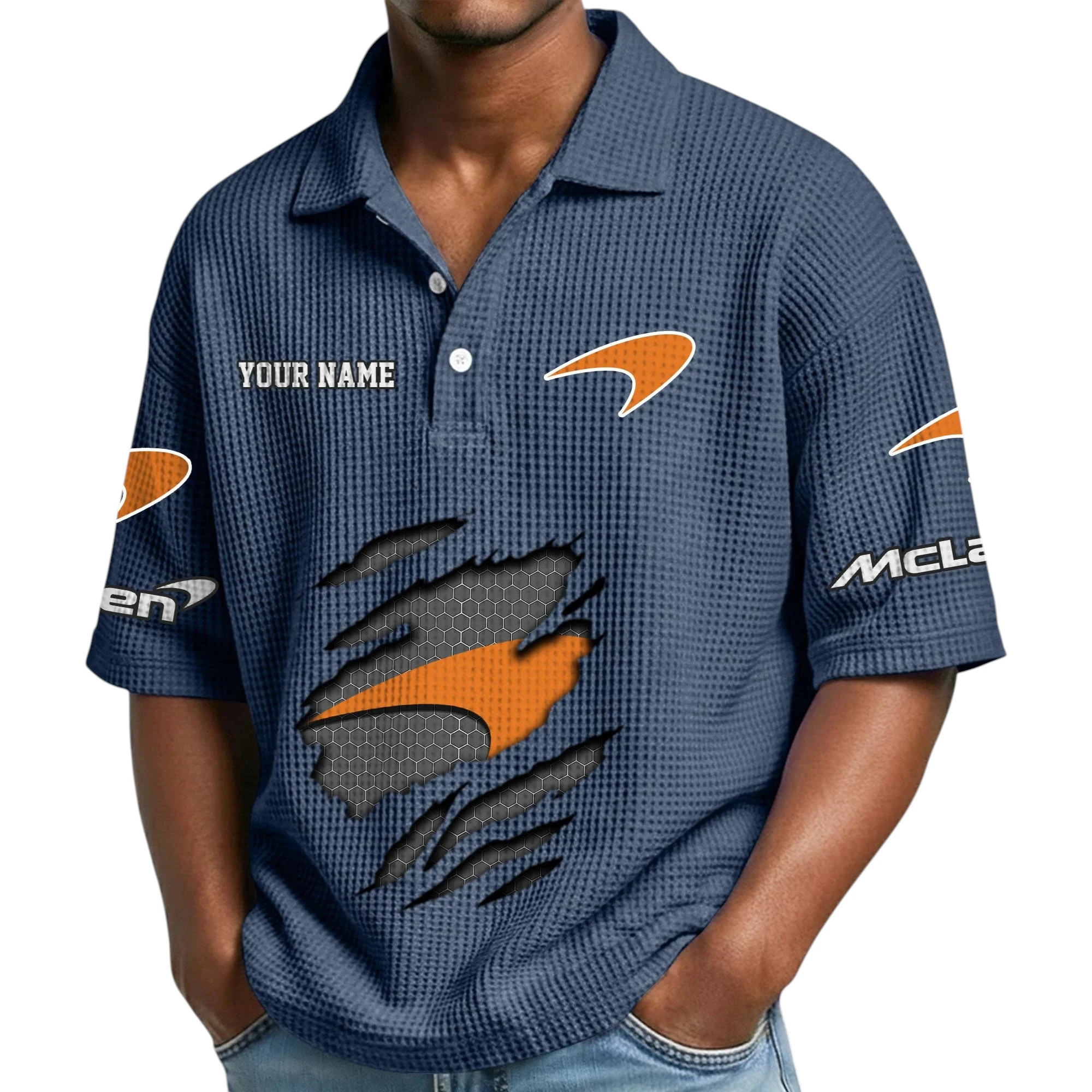 - Design Type: Short-Sleeve Polo with Waffle Knit Texture.