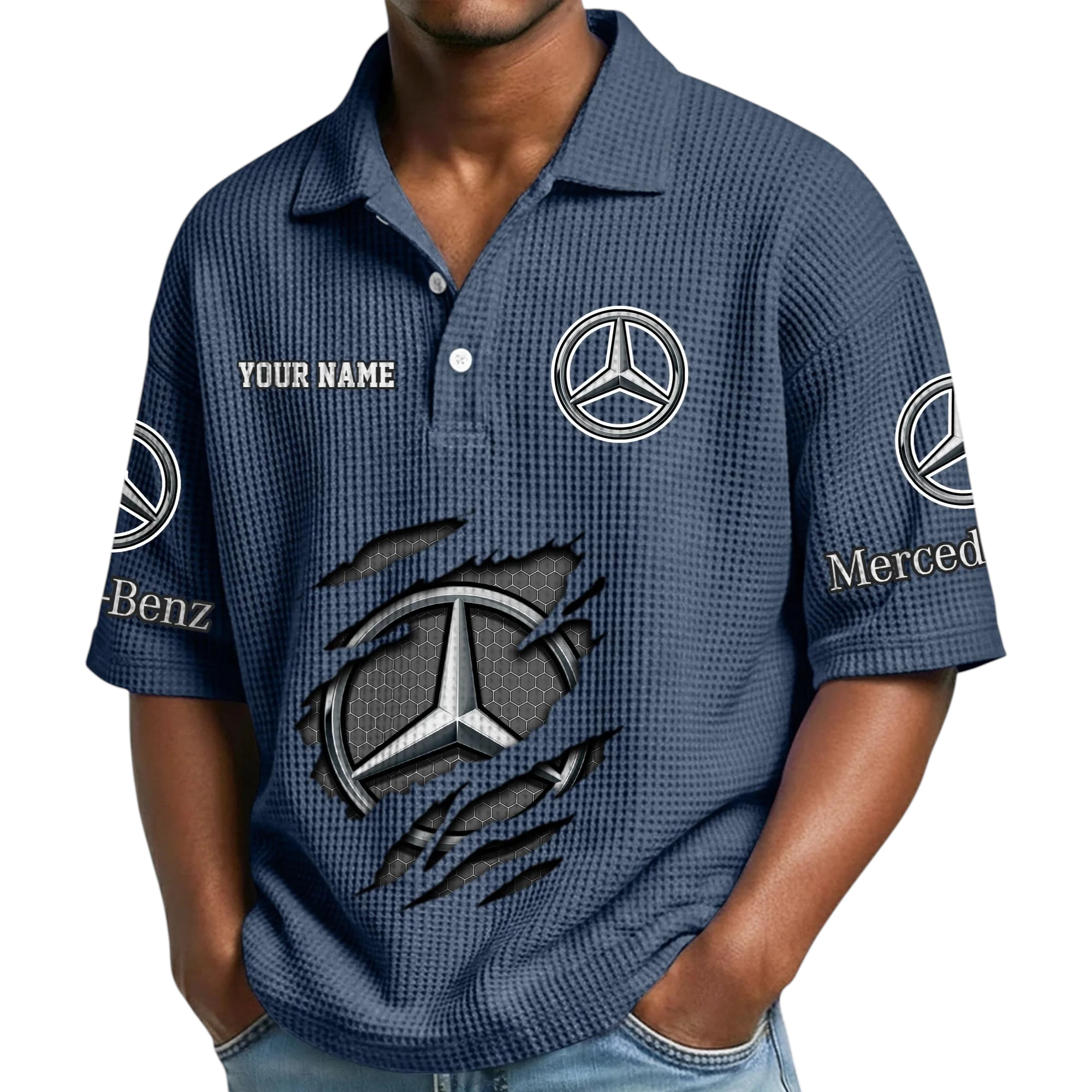 Mercedes-Benz Waffle Polo Shirt Custom Your Name