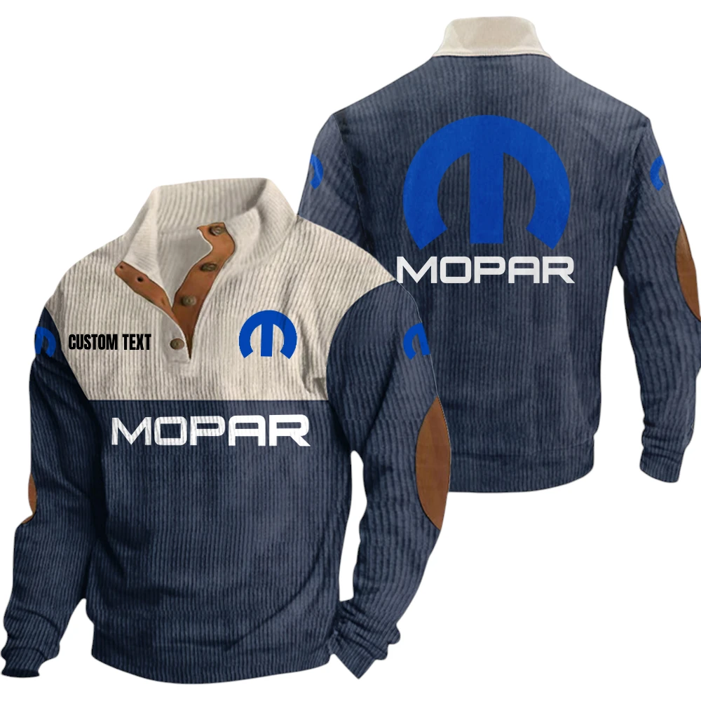 Mopar Exclusive Logo Knitted Ribbed Corduroy Sweatshirt Mid Stretch Stand Collar Pullover Sweater, Custom Text HG150325Y32RCSCT1MOP