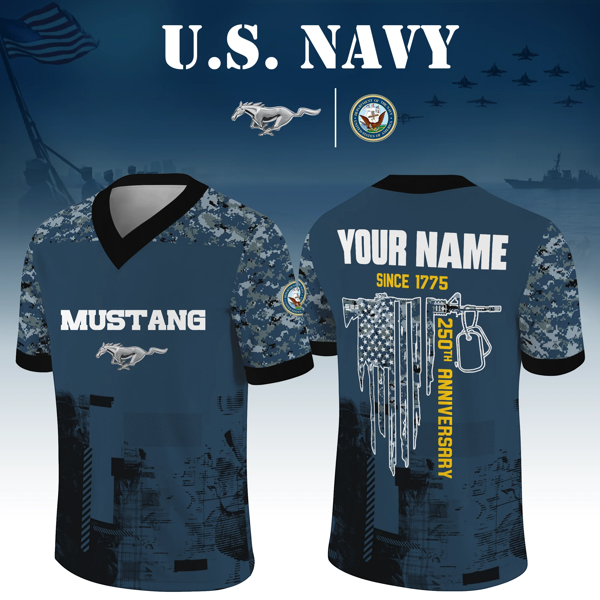 Mustang x US Navy 250th Anniversary V-Neck Short Sleeve Jersey 3D Limited 2026 Custom Your Name