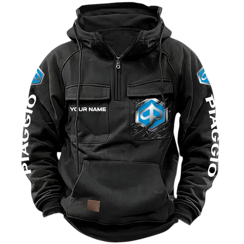 Piaggio Quarter Zip Hoodie, Sports Hoodie Multi-Pockets, Custom Name HG170525Y41HJRCT1PIA