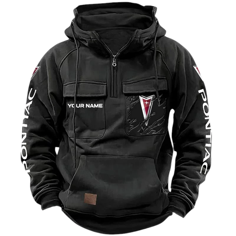 Pontiac Quarter Zip Hoodie, Sports Hoodie Multi-Pockets, Custom Name HG170525Y41HJRCT1PON