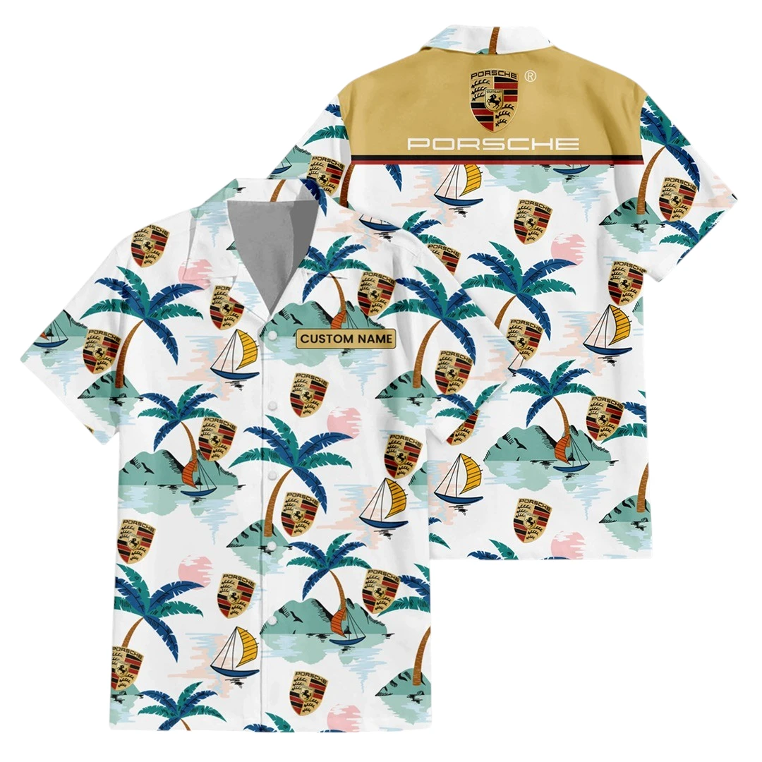 Porsche Exclusive Logo Button Up Hawaiian Shirt Tropical Landscape Pattern All-over Print, Custom Name HIDI210225Y7HWLS2POR
